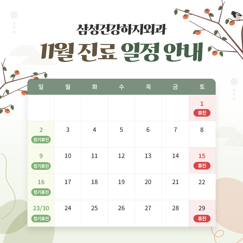 일정 참고하시고 예약 및 내원 부탁드립니다.